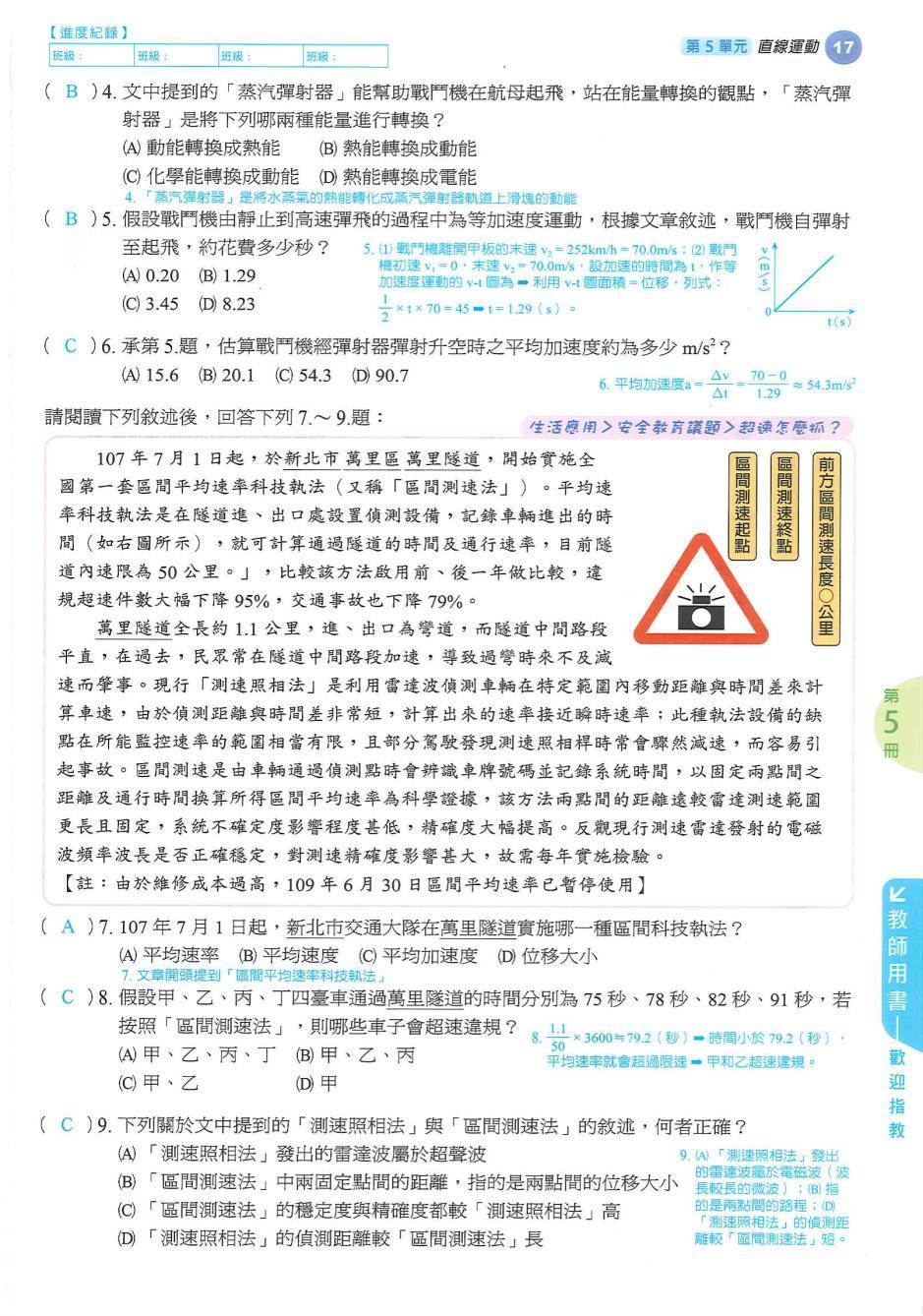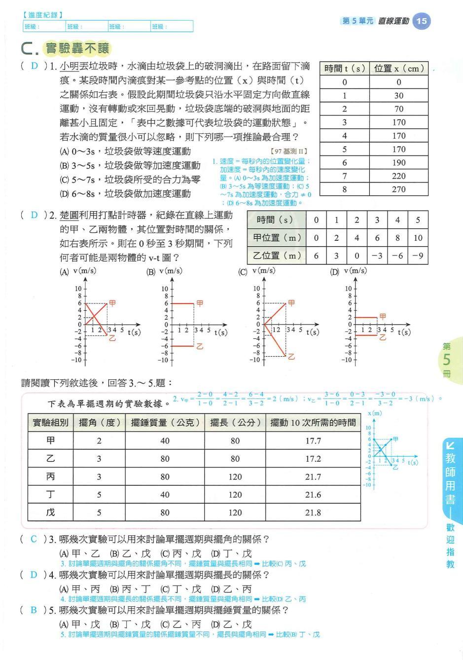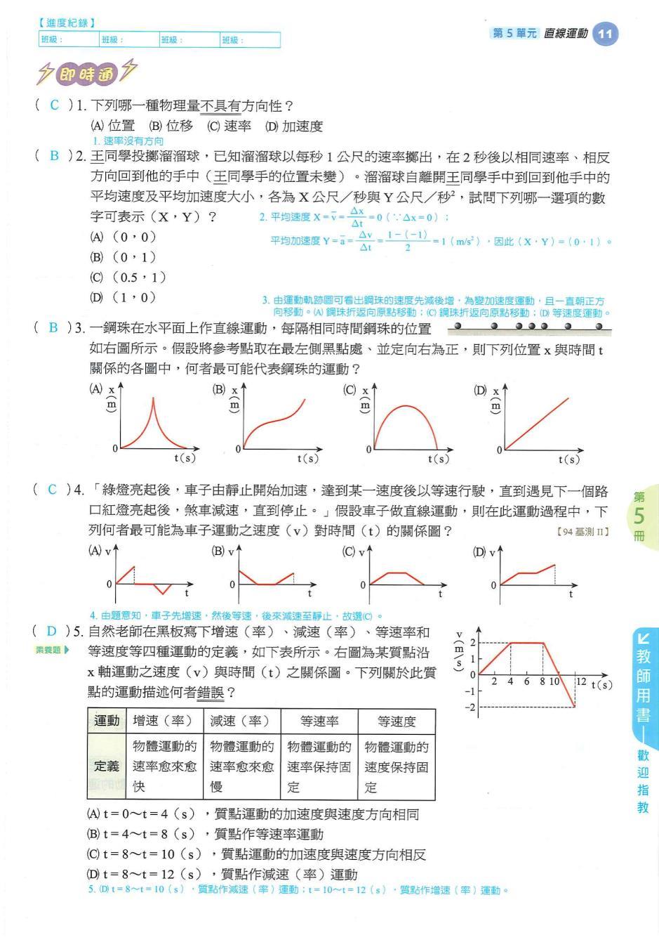 國中理化 第 5 單元 直線運動