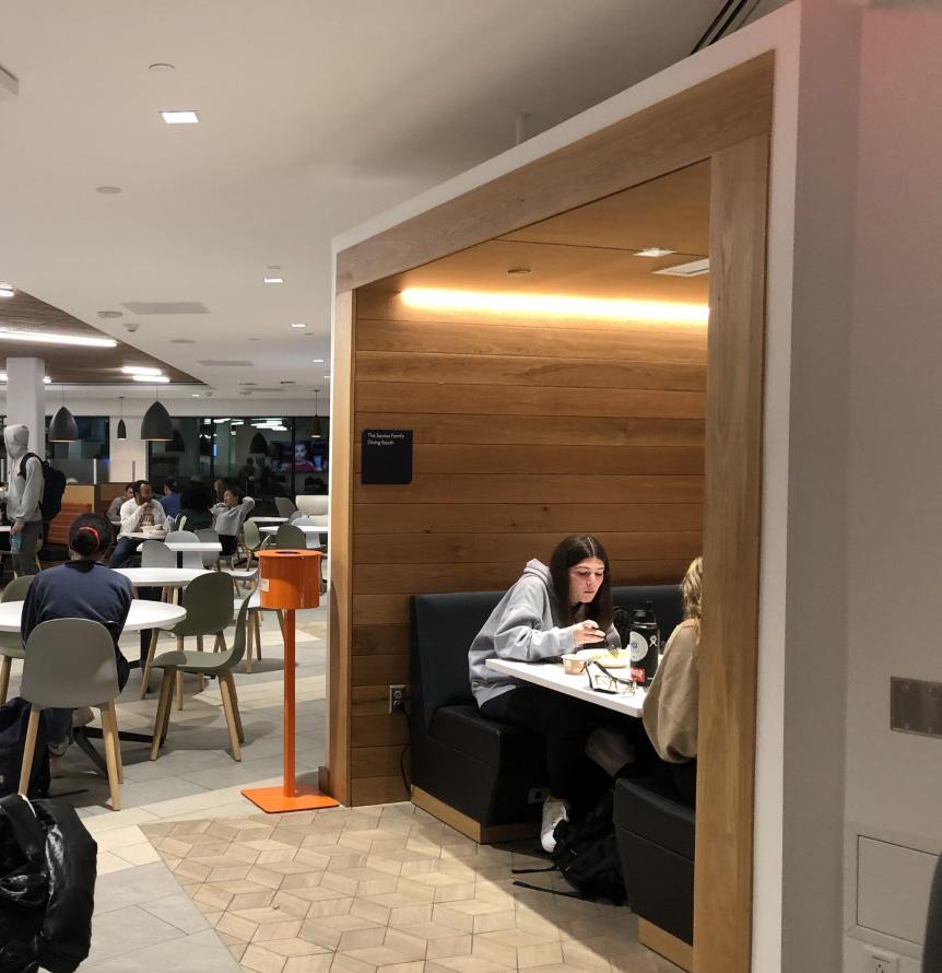 One of the issues of the Warehouse as a whole is its’ lack of Syracuse branding. The new student center on campus, Schine Center, has strong SU branding and was a big inspiration to the materials, finishes,