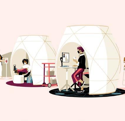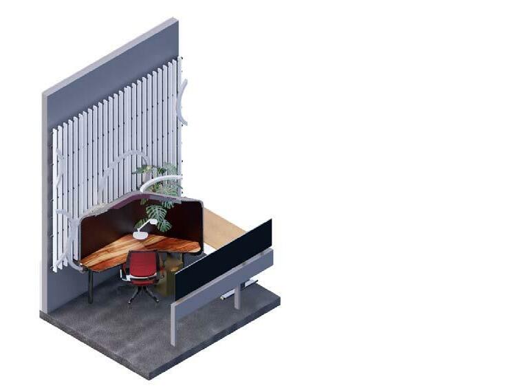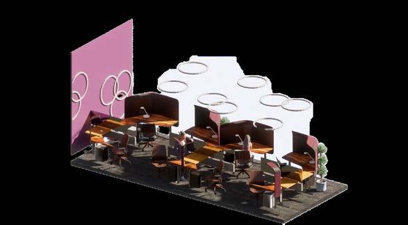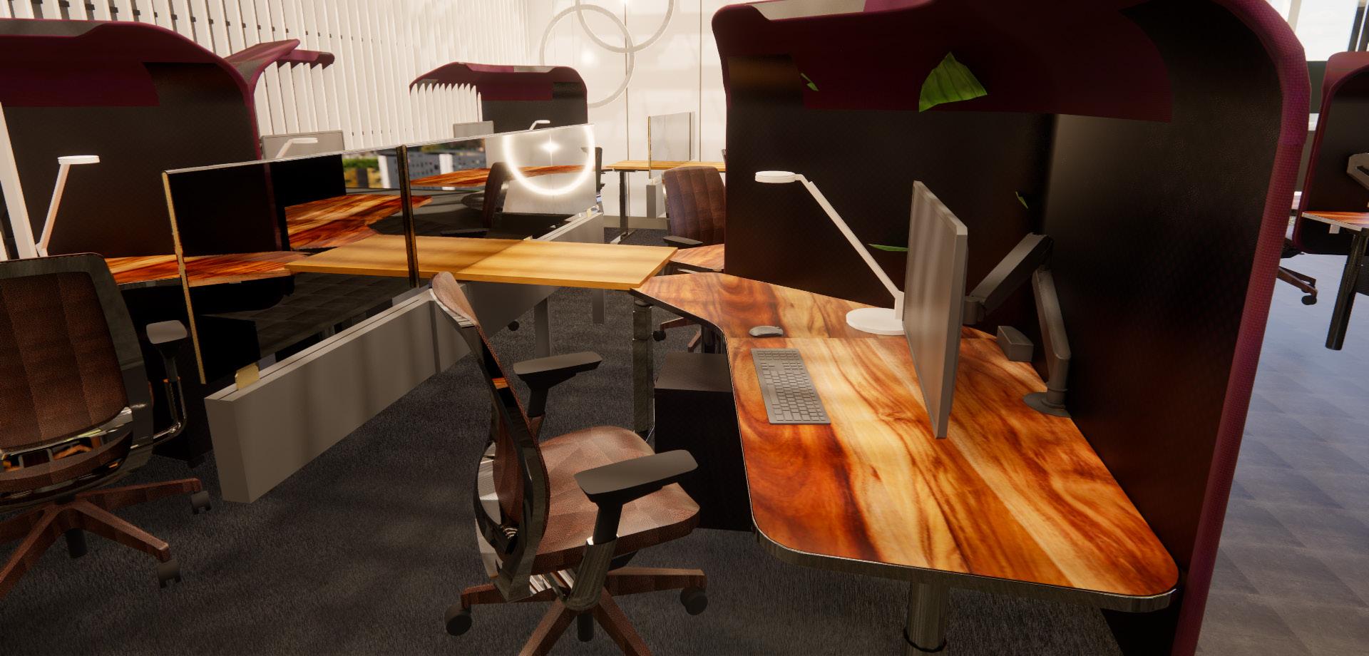 collaboration tables connect individual workspaces, allowing for focus or collaborative work.