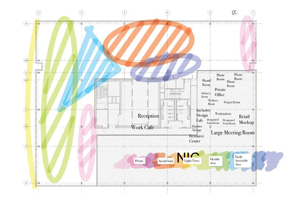 4 D.8 G D H E.2 F.6 Work Cafe Reception Resource Center Large Meeting Room Retail Mockup Designated Team Room Designated Team Room Designated Team Room Private office Private office Wellness Room Mother’s Room Phone Room Phone Room Phone Room Inclusive Design Lab Workstations 4 G F.6 NIC Retail Private Office Team Room Team Room Private office Wellness Room Phone Room Phone Phone Room Phone Room Inclusive Workstations Private Social/loud Focus work Group work Site Analysis. Sun