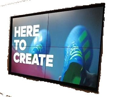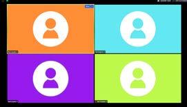 screens implemented into the workplace through worktables and spaces allows for collaboration between in person, hybrid, and online work.