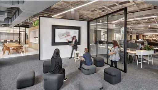 L Perkins & Will’s new york studio features flexible workspaces like the one pictured here.