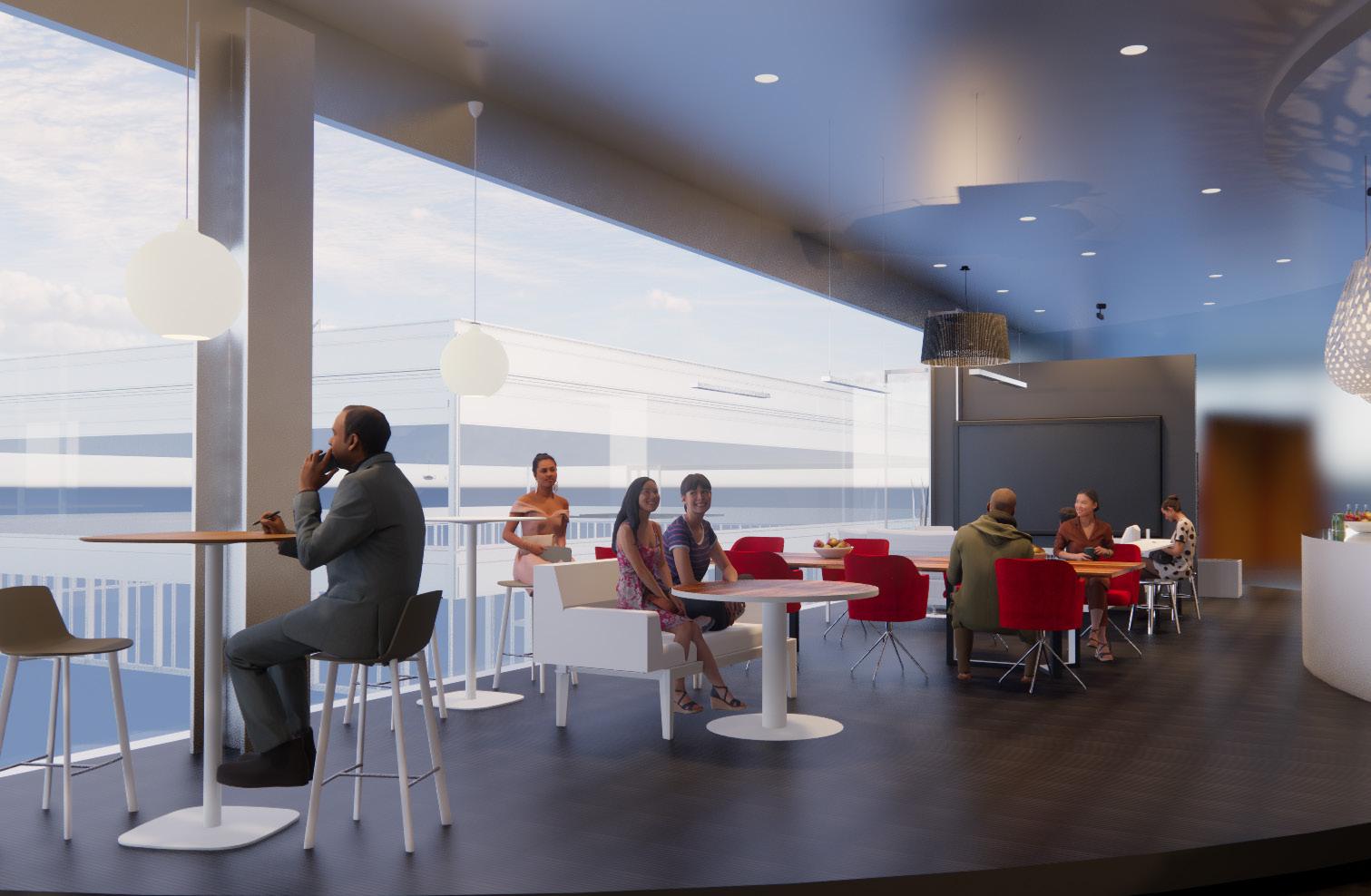 Zoned areas of NEXT encourage connectivity, support, and community through space shaping and design choices that reflect these motifs. push towards innovation connection support community
