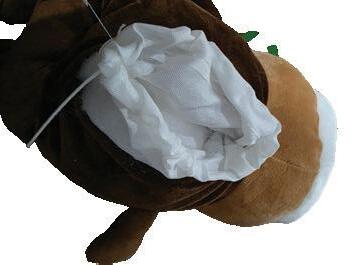 Using some wooden spoons or paint brushes can be helpful to get the fluff into the arms and legs. Fill the arms and legs first and the head and body last. To get a softer animal it will need less stuffing then a firm animal. All children should be supervised by an adult and the younger kids may need a little extra help.