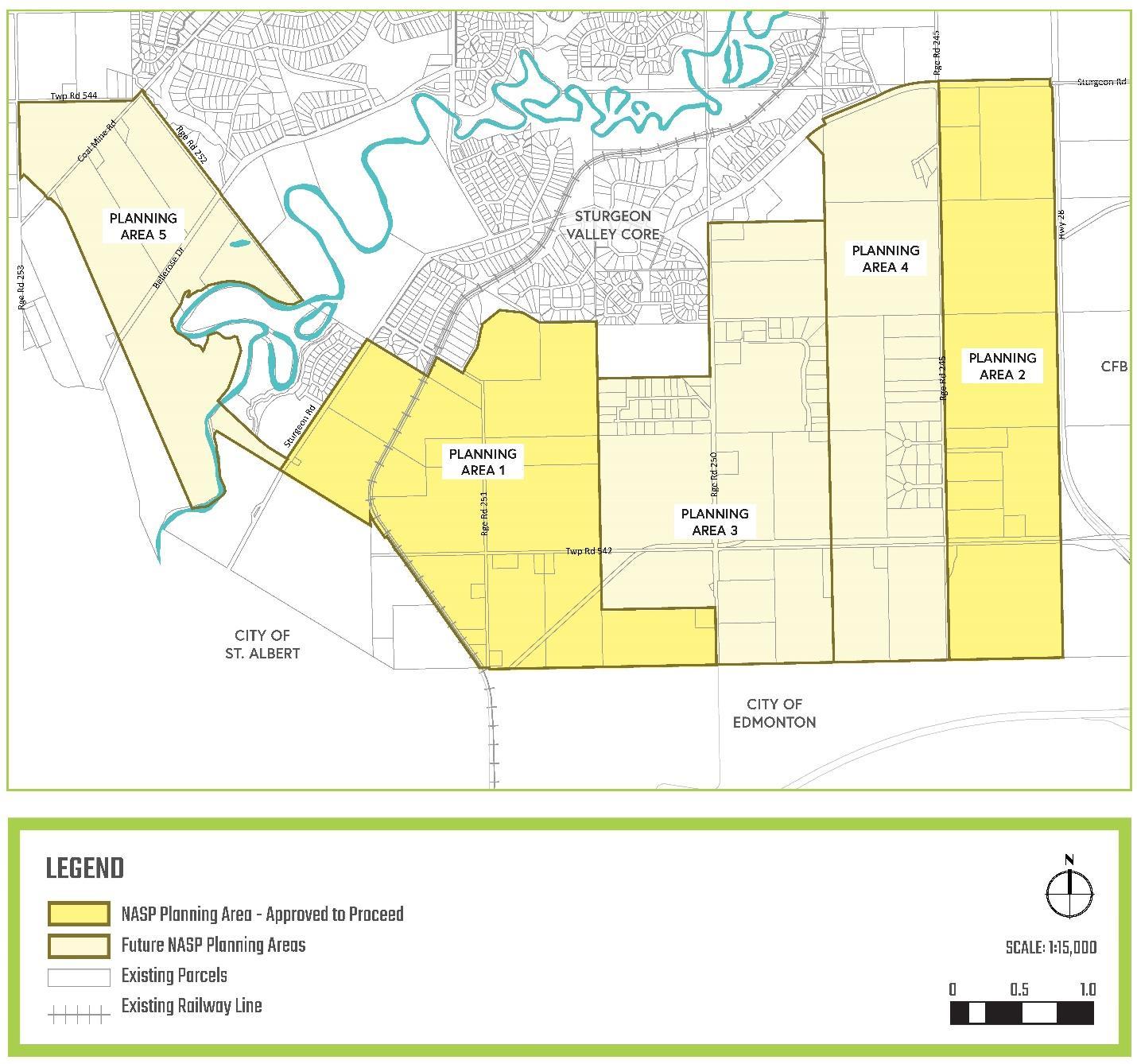 It is noted that the increase in traffic on Sturgeon Road due to new development is dependant on the construction timelines of other new roadways in the Sturgeon Valley, particularly 127 Street. While the neighbourhoods in the immediate vicinity of the roadways is well built out already, some new development such as Planning Area 1 will contribute significant traffic along Sturgeon Road, therefore, funding for new roadway improvements should be contributed by new development on a proportionate share basis.