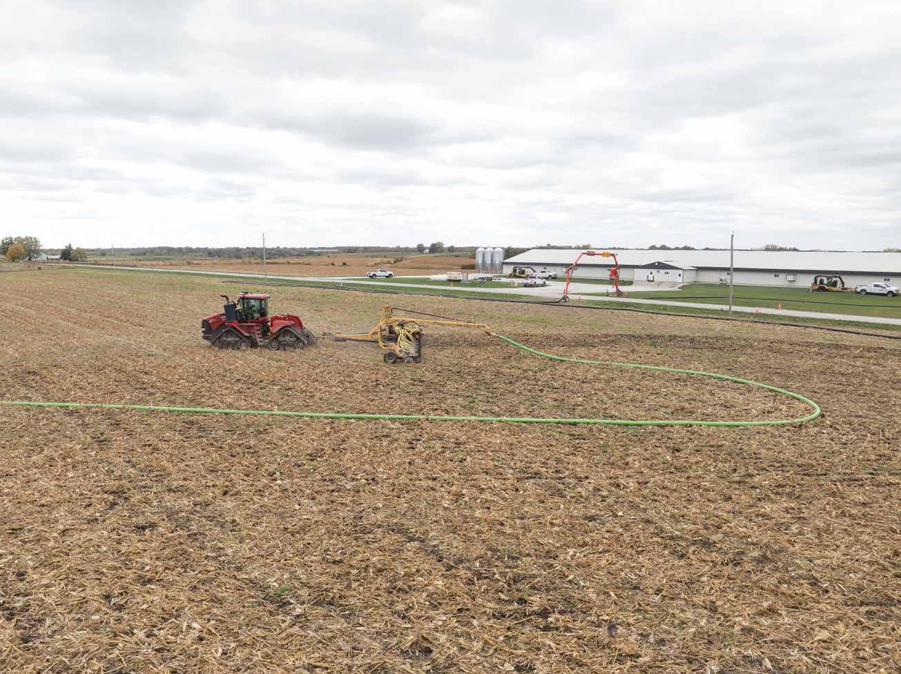 Fall 2025 marked Al Lacaeyse’s first manure spreading season using the Manure Pipe Bridge. A ter years of stu ng dragline through culverts, closing roads or skipping hard-to-access fields, he was ready to try something new.