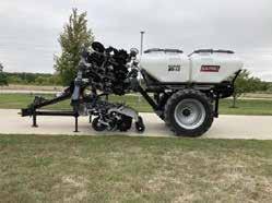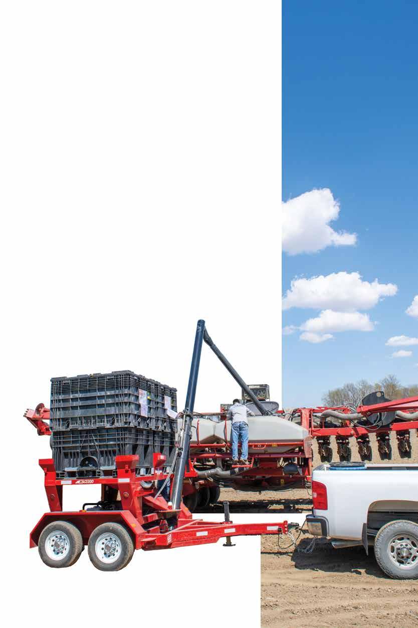 Travis Seed Carts are o ered in bumper pull, gooseneck, and skid-mounted models, with powder coat finishes in black, green, or red. Each seed tender is fully self-contained and road-ready, including its own hydraulic system, DOT-compliant trailer, dual rubber torsion axles, electric brakes, crank jacks and a wireless remote for controlling hydraulic functions. Optional auto-shuto scales are also available.