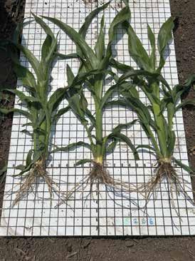 Root Reveal is Beck’s starting point for understanding each hybrid’s potential through its root structure. Root structures are categorized into three types: vertical, balanced and horizontal. These structures are then associated with management practices to help answer how tolerance to environmental stress, population change and responses to nutrient rates and placement a ect product performance.