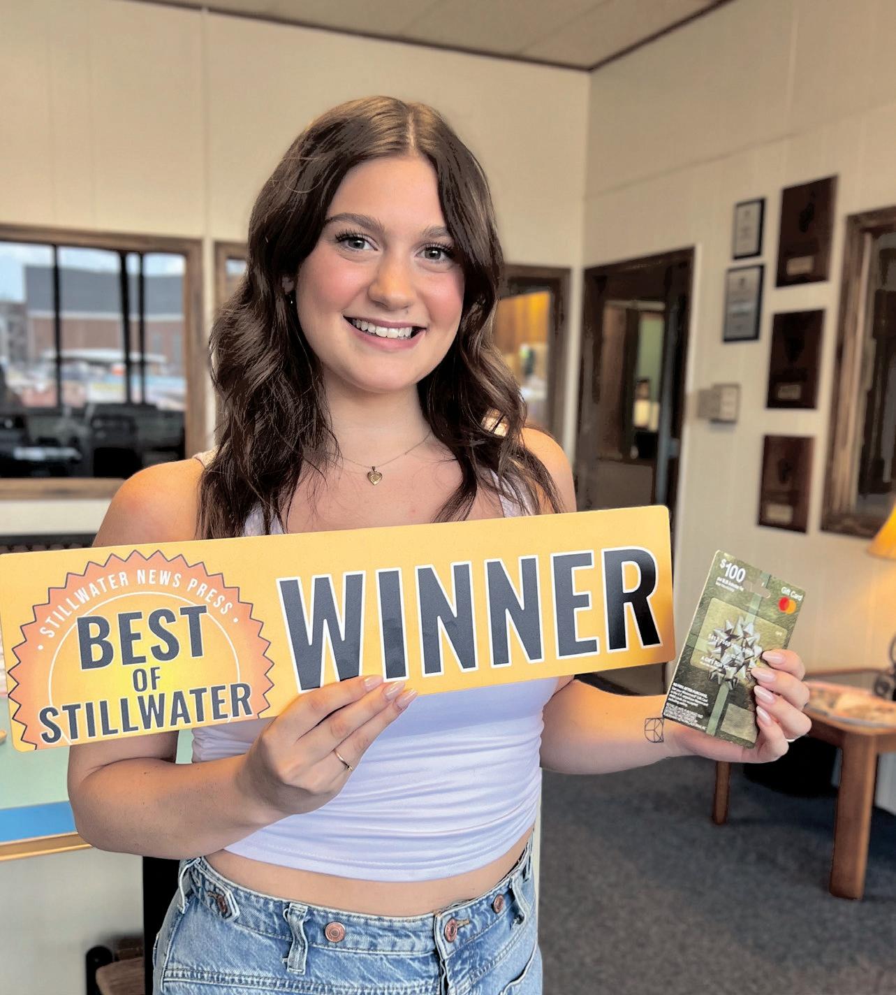 Hayden Richey was randomly selected from 4,883 voters as the winner of a $100 VISA gift card in the 2024 Best of Stillwater contest. Thank you to everyone who nominated and voted for their favorites in this record-breaking