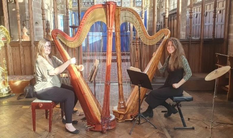 ‘Rascallity’ Harp Duo: Alice Roberts & Kathryn Mason (both RNCM Manchester University).