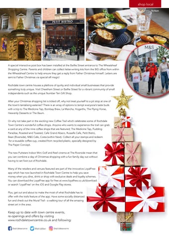 A special interactive post box has been installed at the Baillie Street entrance to The Wheatsheaf Shopping Centre. Parents and children can collect letter-writing kits from the BID office from within the Wheatsheaf Centre to help ensure they get a reply from Father Christmas himself. Letters are sent to Father Christmas via special elf magic! Rochdale town centre houses a plethora of quirky and individual small businesses that provide something truly unique. Visit Cheetham Street or Baillie Street for a vibrant community of small independents such as the unique Number Ten Gift Shop. After your Christmas shopping list is ticked off, why not treat yourself to a pit stop at one of the town’s tantalising eateries? There is an array of options to tempt everyone’s taste buds with a trip to The Medicine Tap, Bombay Brew, La Mancha, Hogarths, The Flying Horse, Heavenly Desserts or The Baum. Or why not take part in the exciting new Coffee Trail which celebrates some of Rochdale Town Centre's wonderful coffee shops. Anyone who wants to experience the trail can grab a card at any of the nine coffee shops that are featured; The Medicine Tap, Pudding Paradise, Roasted and Toasted, Cafe Grand Abaco, Russells Cafe, Petit Bistro, Bean (Riverside), M&S Cafe, Costa (within Next). Collect all your stamps and redeem for a reusable coffee cup, created from recycled plastic, specially designed by The Paper Concept. The new Puttstars Indoor Mini Golf and Reel cinema at The Riverside mean that you can combine a day of Christmas shopping with a fun family day out without having to set foot out of Rochdale. Many of the retailers and venues featured are part of the innovative LoyalFree app which has now launched in Rochdale Town Centre to help you save money when you dine, drink or shop with exclusive deals and loyalty schemes. You can download the LoyalFree app for free at www.loyalfree.co.uk/download or search ‘LoyalFree’ on the iOS and Google Play stores. Plus, get out and about to make the most of what Rochdale has to offer with the trails feature of the app. Have some socially distanced fun and check out the Mural Trail - a walking tour of all the amazing street art in the area.