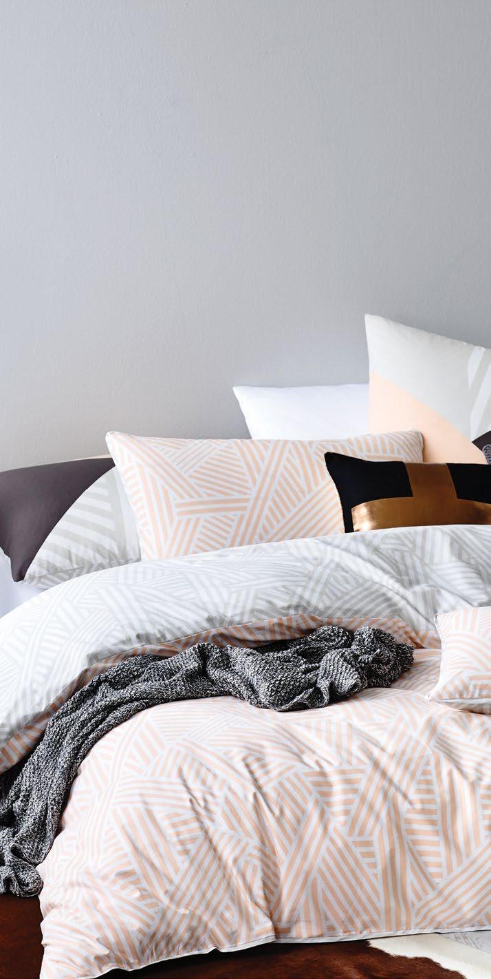 When decorating with a neutral palette choose daring prints as a Spring statement. Lighten up a bedroom with FORTY WINKS’ refreshing bedding range which mixes pastel colours and geometric shapes perfect for an on-trend designer look.