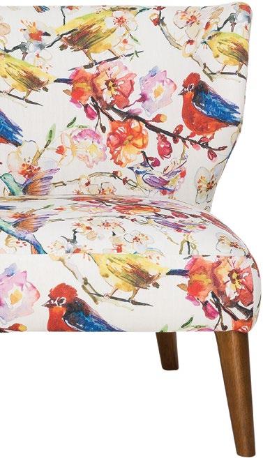 ARE FLORALS. ADDING A LIVELY PATTERNED ARMCHAIR to any space will make a statement. Pare BACK WITH BLOCK AND NEUTRAL COLOURS TO ACHIEVE An ON-TREND LOOK for THIS SEASON. It's a sure way to spark conversation.
