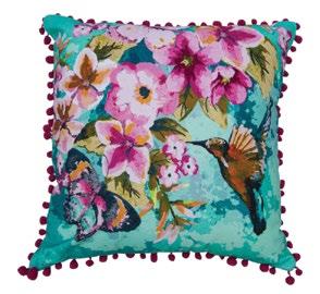 DOMAYNE SERENITY ROSE CUSHION PURPLE $59.95, TROPICAL BIRD CUSHION $44.95