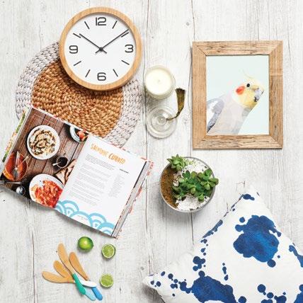 1 MUSE clock $39.95 WHEEL & BARROW seagrass placemat $14.95 BIOME frame $29.95 and print $19