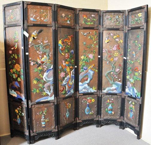 SIX PANEL HAND ENAMELLED CLOISONNÉ SCREEN $7,500, IPSWICH ANTIQUE CENTRE