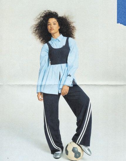 Ena Pelly is redefining athleisure through a 2025 lens with a SportySpice-coded edge, pairing crop tops with crisp button-ups for a look that’s equal parts polished and playful.
