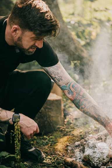 The generous kitchen is bathed in natural light and features wooden units with bespoke handmade ‘Bluebell’ tiles, adding a touch of