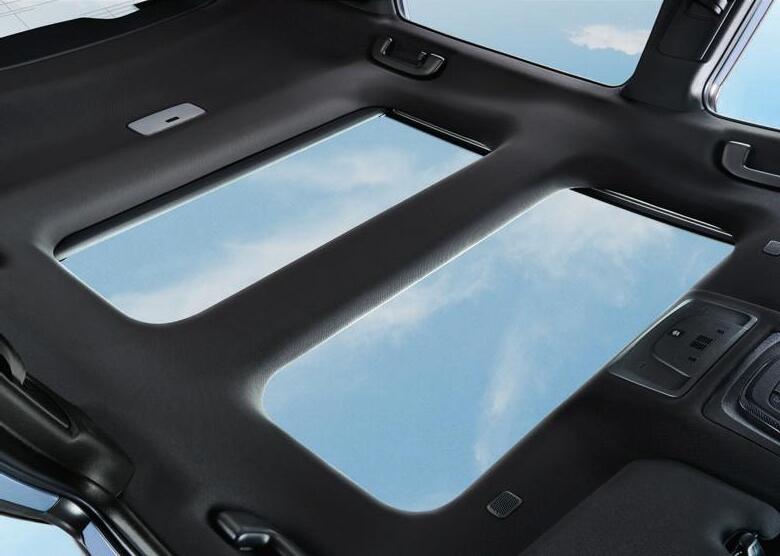 Das Panoramadach lässt das geräumige Interieur noch grösser und luftiger erscheinen. Gegen zu starke Einstrahlung schützen elektrisch betätigte Jalousien.