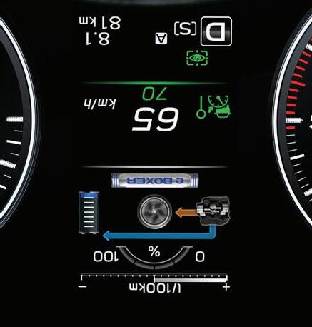 Le système SUBARU e-BOXER gère automatiquement le régime du moteur 2.0 litres à injection directe et celui du moteur électrique en fonction des sollicitations. Le moteur électrique du système hybride est intégré dans la boîte de transmission Lineartronic. La batterie est centrée à l’arrière. Cette configuration conserve la remarquable stabilité et le centre de gravité surbaissé obtenus grâce au moteur SUBARU BOXER et à la traction intégrale symétrique.