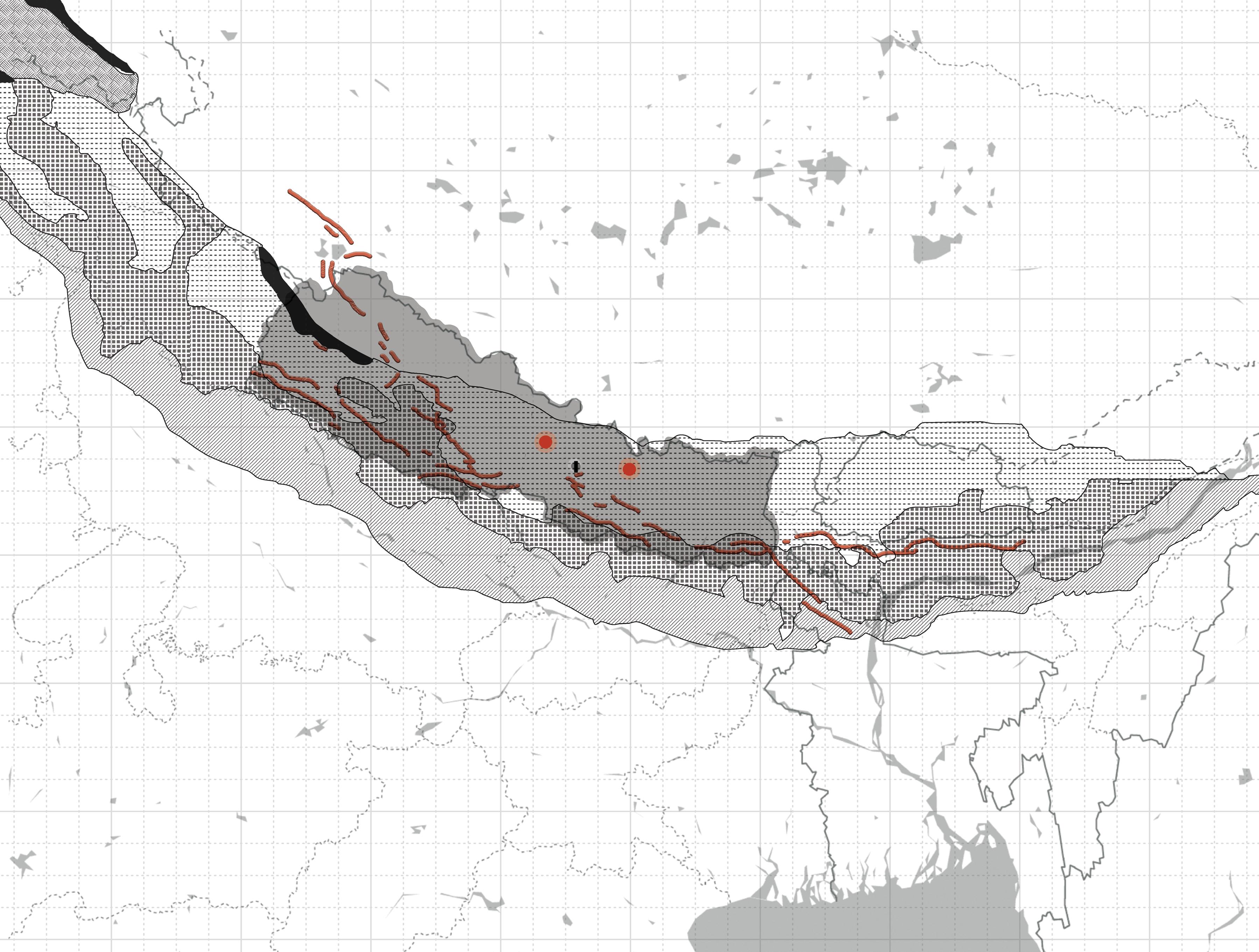 TETHYAN HIMALAYA GREATER HIMALAYA LESSER HIMALAYA ACTIVE FAULT LINES THRUST FAULT