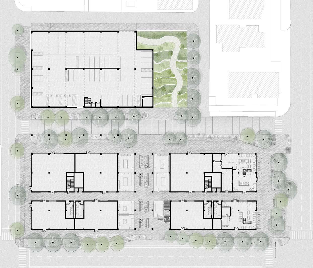 Another primary consideration was the site design. Currently, the neighborhood lacks accessible green spaces for residents. So, our focus was on enhancing the resident’s and pedestrian’s experience by integrating comfortable pathways and ample greenery. The Gridscape aims to not only provide a functional and aesthetically pleasing environment but also to contribute positively to the community’s well-being through thoughtful landscape design.