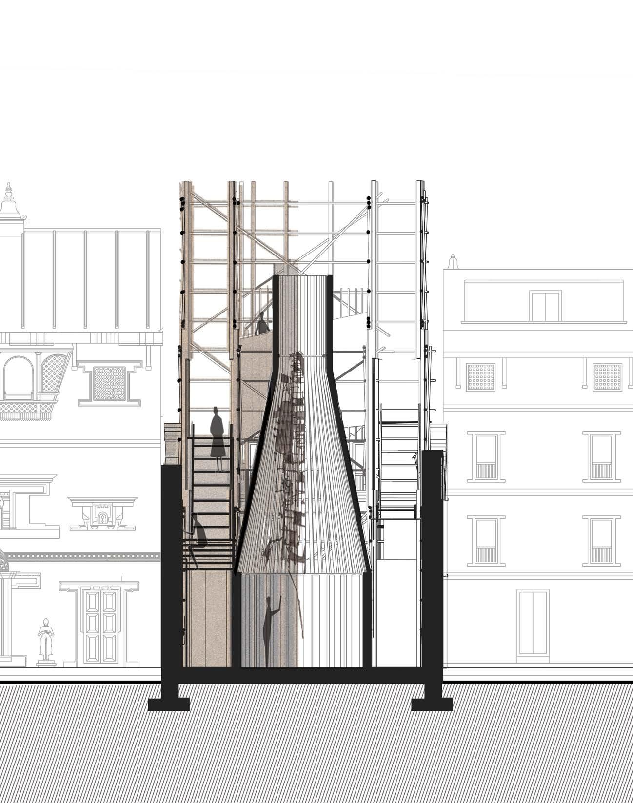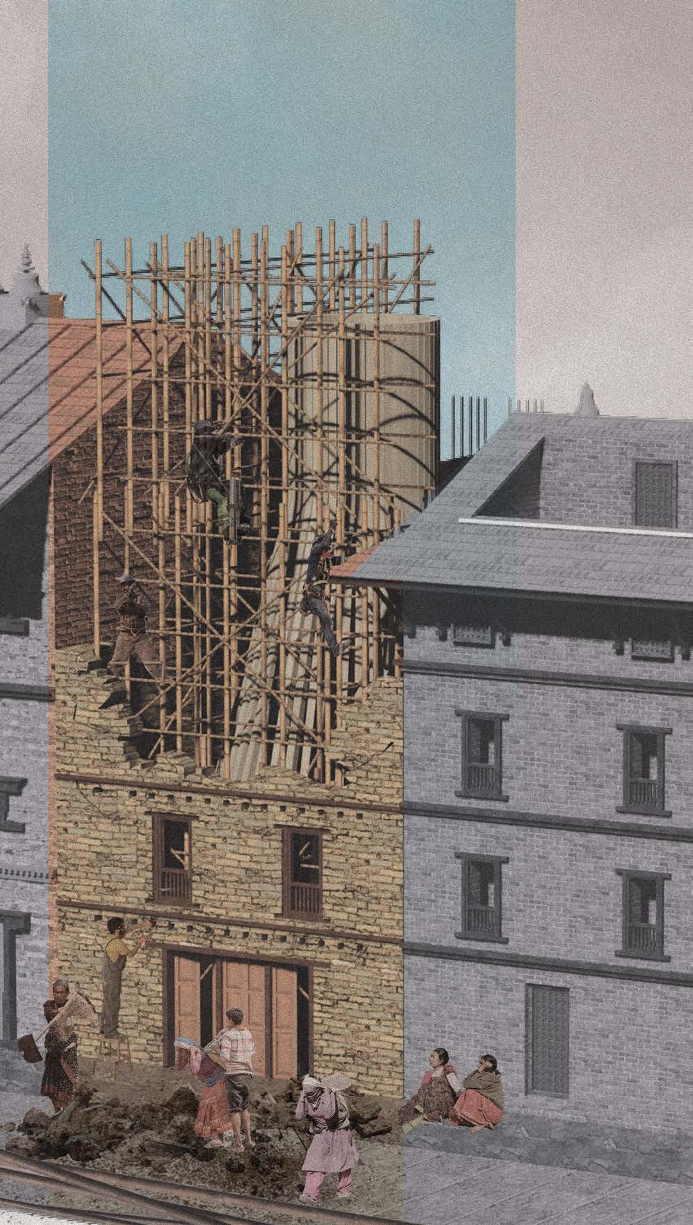 In the pause between destruction and reconstruction, this intervention preserves Kathmandu’s tales of resilience and loss. By involving locals in construction and using materials from the ruins, this intervention is reclaiming, not just rebuilding. This practice ensures sustainable rebuilding and adds rich history to each structure, safeguarding stories that might otherwise be lost. With locals as builders and ruins as building blocks, a layer of healing and renewal unfolds.