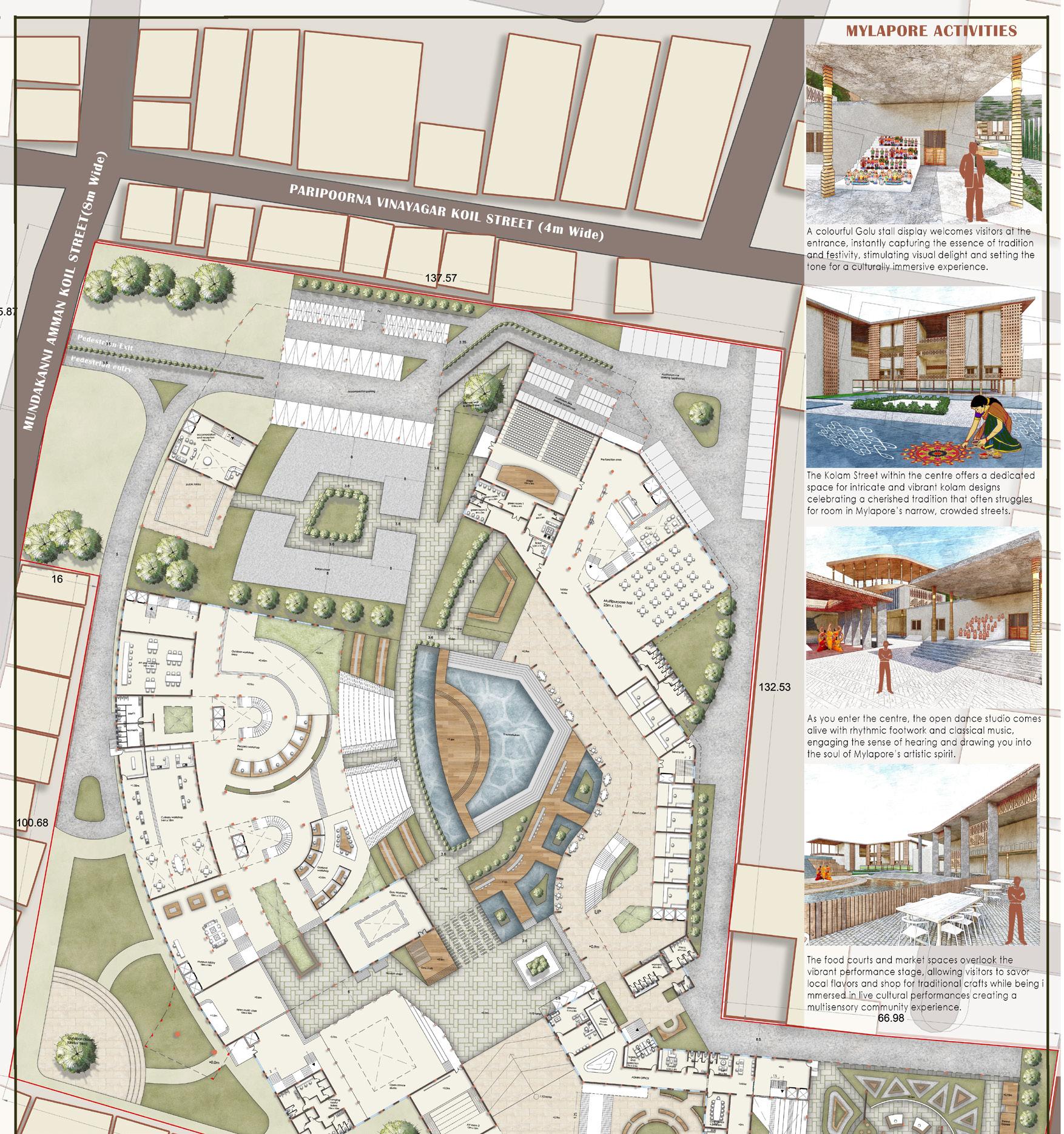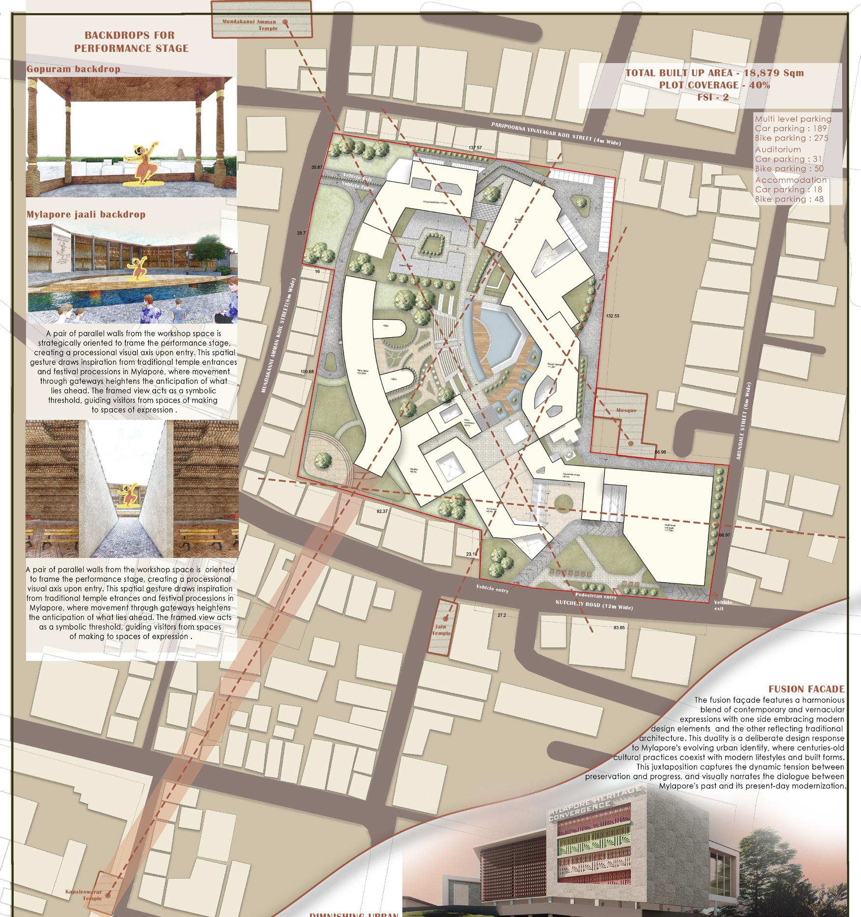 Provided several backdrops like the museum, theppakulam and kapaleswarar temple gopuram for the classical performances.