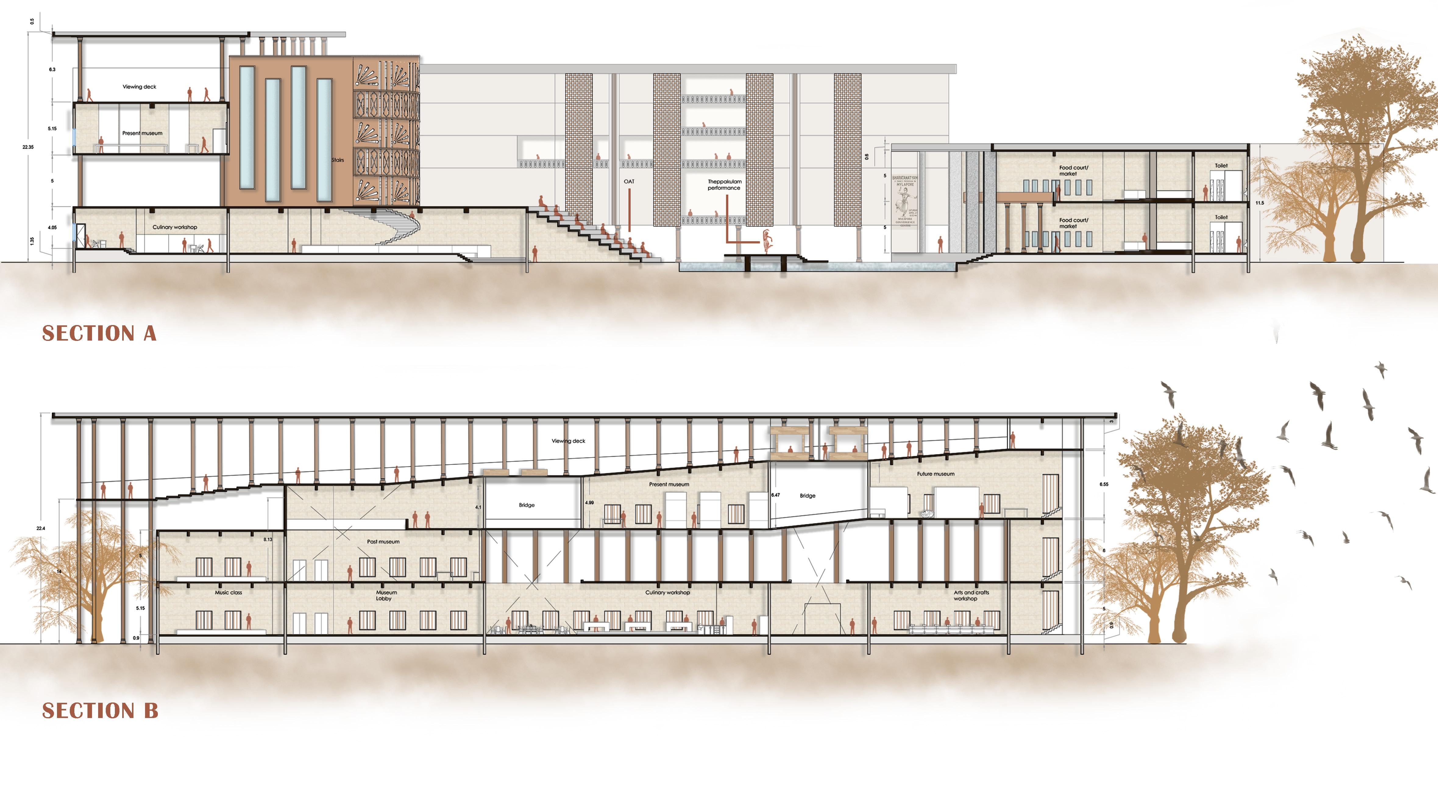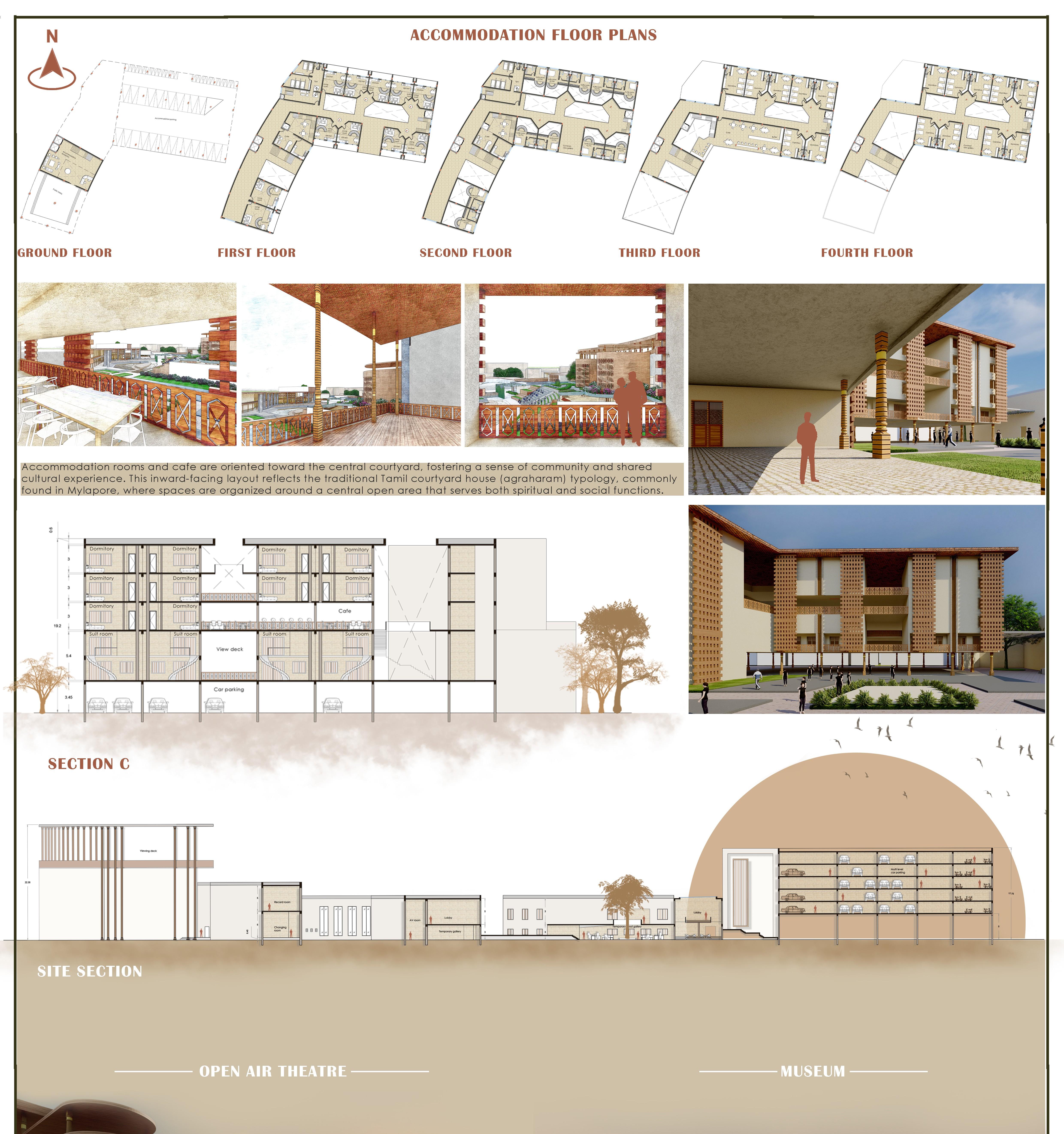 Each floor’s activities have been thoughtfully separated to ensure a consistent footfall. Additionally, these areas have been designated for recreational, entertainment, commercial, and other purposes. The lobby areas have also been utilized effectively to accommodate necessary activities. The spaces are designed with climate responsiveness and offer essential amenities for the community. The design is universally accessible and ensures public safety.