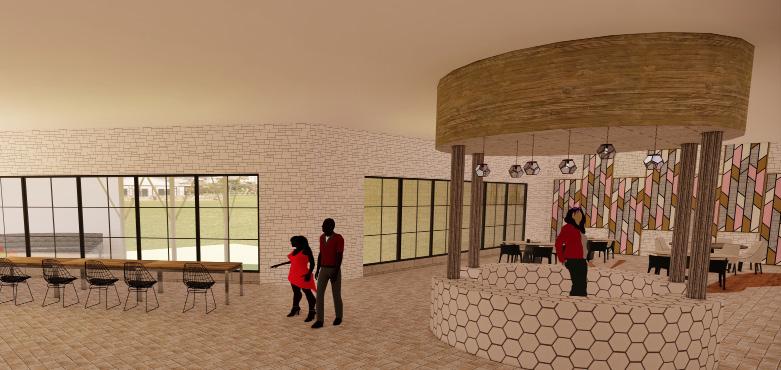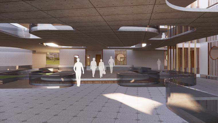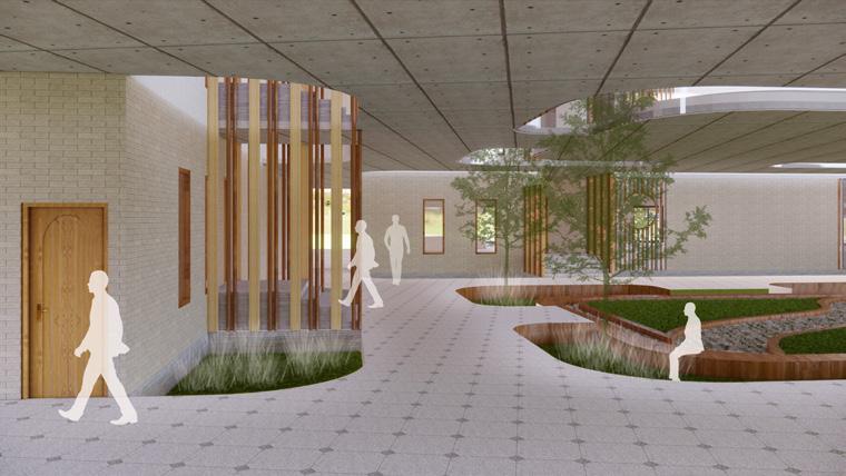 Every interior spaces has visual connectivity between them which is an important aspect to Consider in a public building to Ensure safety and security.