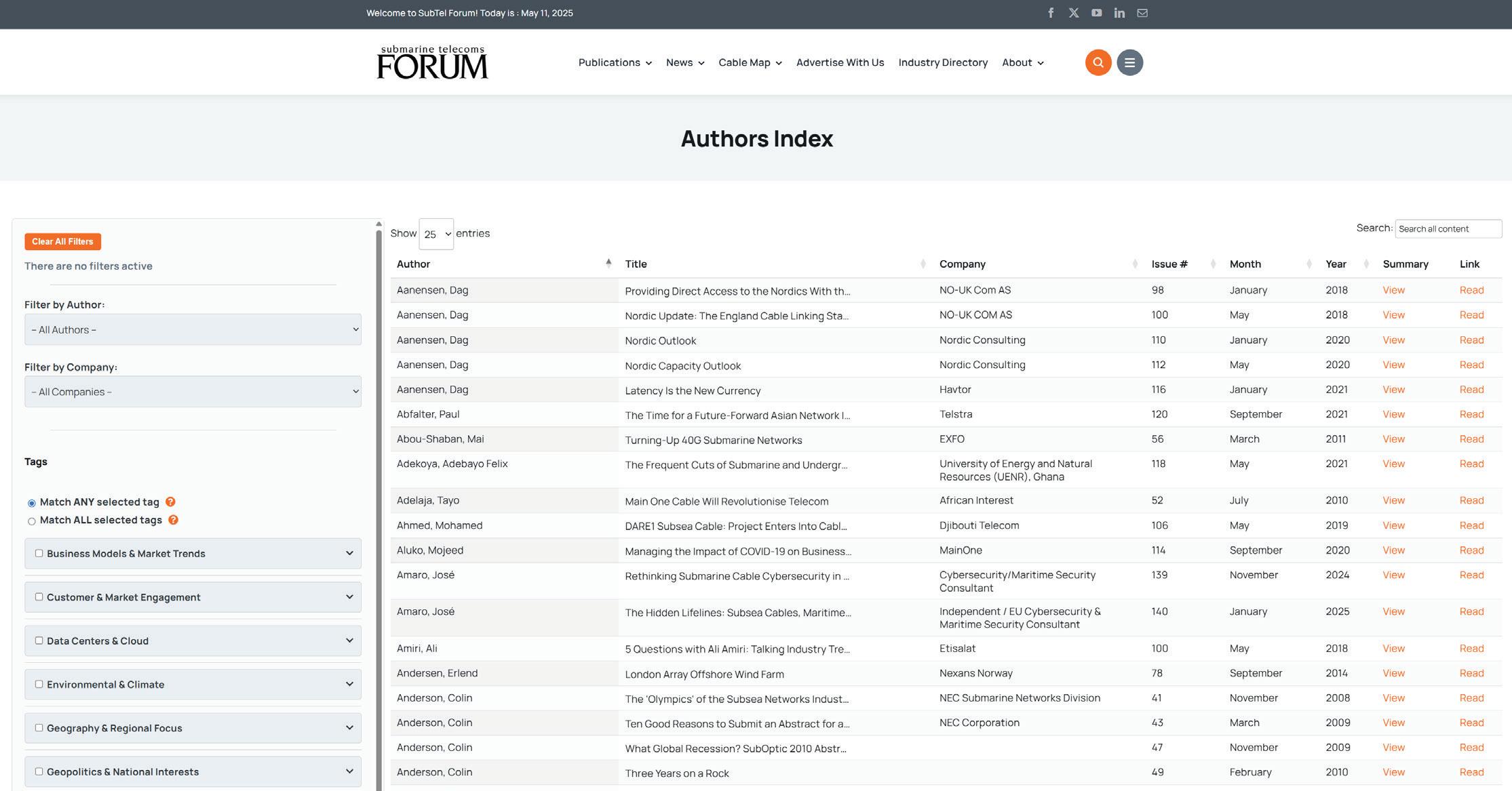 We’ve launched a new Authors Index on SubTel Forum Magazine and our website—a searchable directory that lets readers easily find articles by contributor. It’s a new way to spotlight industry voices and access expert insights. Click here to check it out!