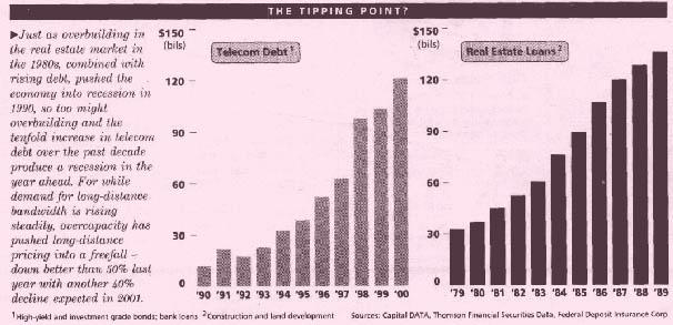 Most companies were happy to take that risk knowing that they could refinance debts in the bond market. As shown in figure 2, the borrowing frenzy by telecommunication companies had some uncanny similarities with the real estate bubble of the 80s.