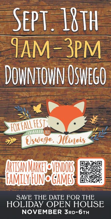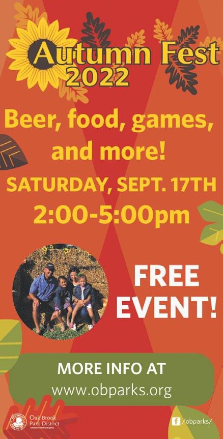 Celebrate autumn’s arrival at this familyfriendly festival featuring: Pumpkin Painting, Mule-drawn Hayrides, Games, Nature Crafts, Guided Hikes, Folk Music, Refreshments. Sun day, Sept. 25, Noon – 3 p.m. Admission is FREE; nominal fee for crafts and refreshments. No registration required. Oakhurst Forest Preserve, 1680 Fifth Ave., Aurora. www.kaneforest.com.