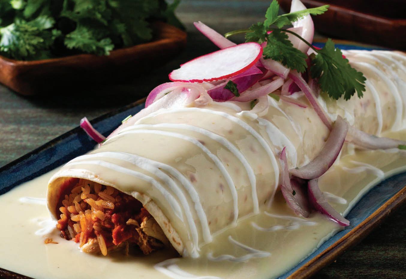 and filling with choices such as steak tampiqueña, an 8-ounce, center-cut Angus ribeye with a chicken mole enchilada, two chicken taquitos, plus rice and beans, or try the molcajete de mar for a medley of fresh-caught seafood in a rich sauce with sides of rice, beans, lettuce, pico de gallo, sour cream and tortillas. “These dishes have become guest favorites for their bold flavors and standout presentation. There is a lot of prepping that goes into our food and drinks,” Orona says.