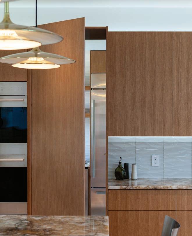 Of course, some projects in “Modern West” embrace modernism full-on, in one case creating the ultimate in clean lines by cladding 90 percent of the home’s interior in poplar paneling with no visible hardware. The TV, bar and even kitchen appliances can be hidden by poplar, as if the home was carved from a tree.