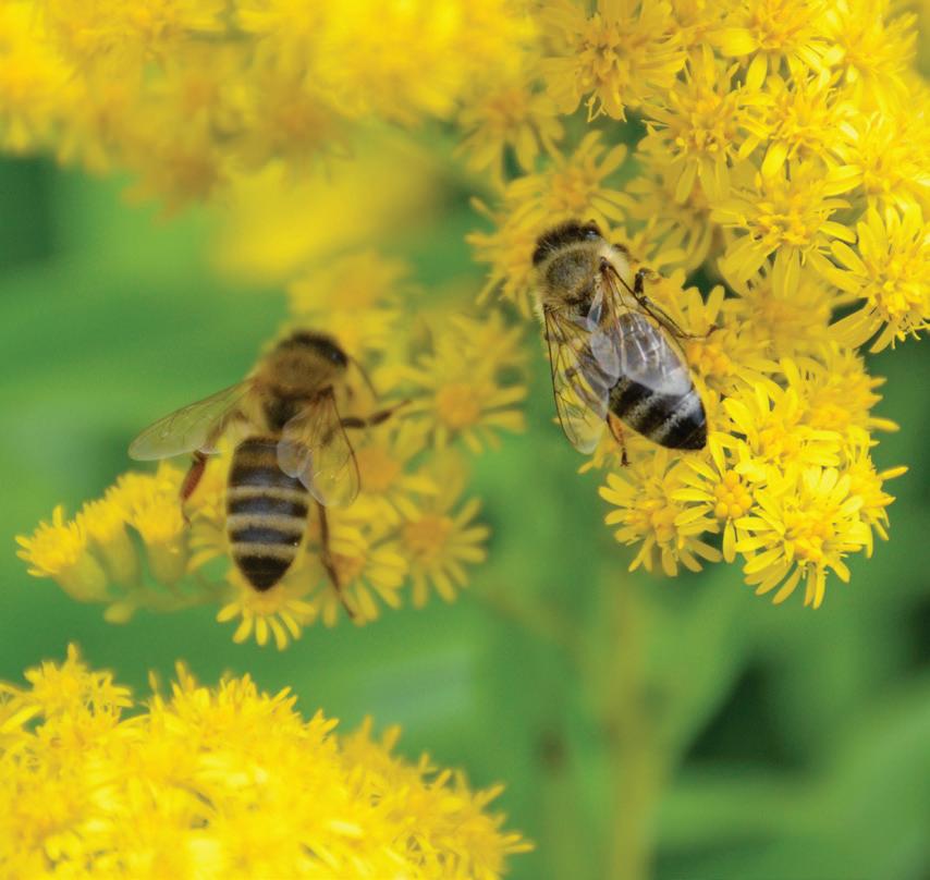 If you have the room, plant a golden rain tree—a low-maintenance, droughtresistant tree that can grow to 30 or 40 feet in height and diameter. Bees love the bright yellow flowers that cover the tree all summer long. Goldenrod, a herbaceous perennial that blooms in late summer and fall, also attracts bees—especially bumblebees.