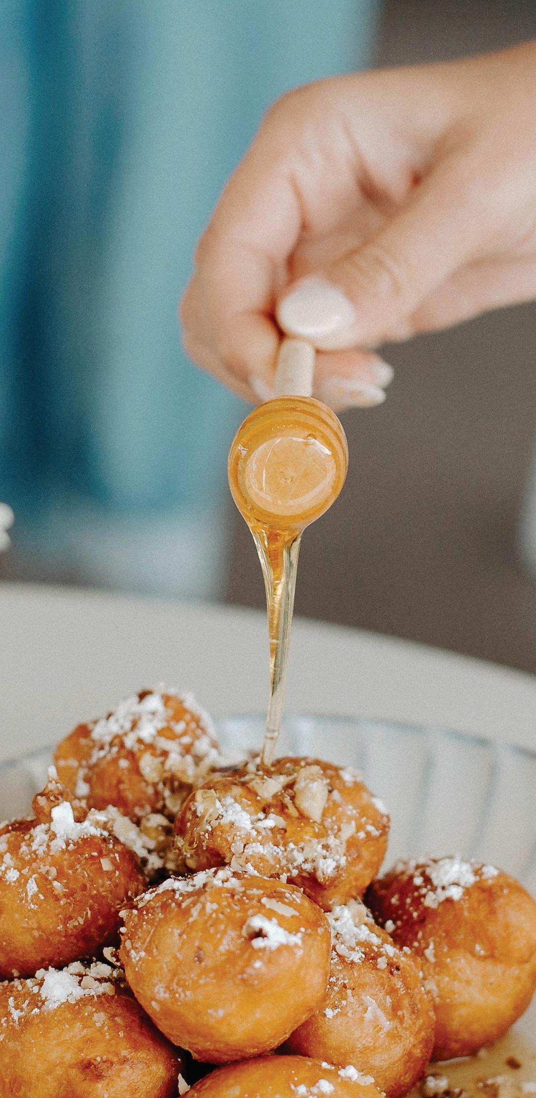 Of course, a few Greek-influenced dishes include Greek fries, a popular savory dish. For a sweeter treat, try the loukoumades —a small-batch dough that becomes donut holes soaked in honey and topped with