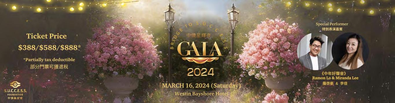 「中僑互助會的捐助者、活動贊助商、義工和董事 會成員的慷慨支持,為我們社區中的新加拿大人和弱勢 群體播下了成功的種子。」中僑基金會主席林頌恩先生 表示,「我們的服務在人們的生活中產生了真正的影 響——無論是幫助新移民學習英語,還是幫助年輕人找 到第一份工作,或是幫助家庭找到安全的住房,又或是 幫助長者獲得醫療保健。您應該為自己在幫助他們獲得 所需支持所扮演的角色感到自豪。」