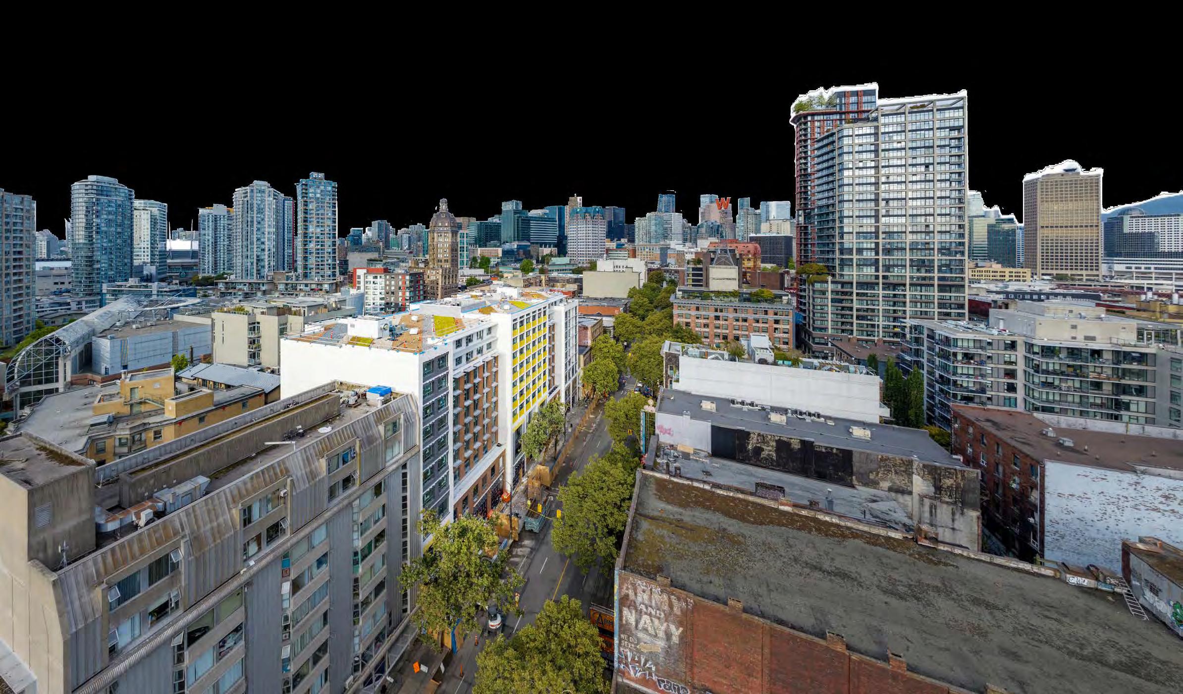 漢文樓位於溫市中心東端, 融合溫哥華兩 大老區 — 華埠及煤氣鎮 — 的都市生活及 深厚文化歷史。漢文樓鄰近主要巴士路線, 離數個架空列車站更是幾步之遙,住客能便 捷地在低陸平原地區暢行。漢文樓附近亦有 大量餐廳及商店,方便住客購買必須品及到 訪各美食熱點。
