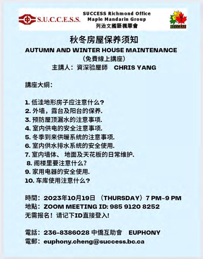 https://successbc.ca/evergreen-news/ 聯絡郵箱 maple.li@success.bc.ca 下期出版日:11月06日