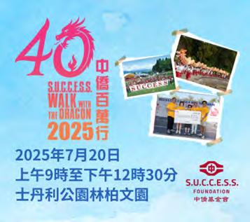 由中僑基金會主辦的第40屆「中僑百萬行」將於 2025年7月20日(星期日)於士丹利公園林柏文園隆 重舉行。今年活動籌款目標為$400,000善款,以支 持中僑多項未獲政府資助的社區服務項目,包括移 民及難民、青少年、家庭及長者等計劃。