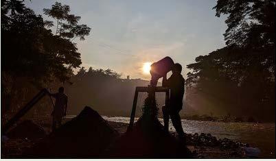 EARLY WORK. Laborers quarrying sand and gravel at the Pugaan River in Iligan City to avoid the heat during daytime. MindaNews photo by BOBBY TIMONERA