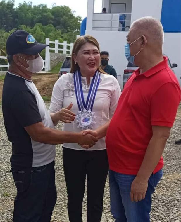 INDAHAG, Cagayan de Oro City barangay chairman Jocelyn Dahino (center) confers with Mayor Rolando Uy (right) at the sidelines of the inauguration of the new water treatment facility of JE Hydro & Bioenergy Corporation in the barangay. Dahino is grateful to the company for choosing Indahag as the site of the distribution of its potable water services. INDAHAG