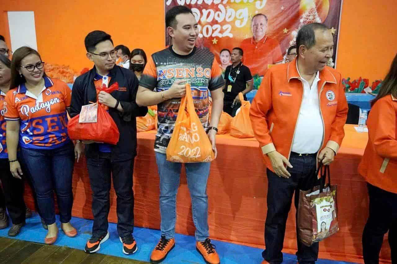Mayor Henry “Indy” Oaminal, Jr. (2nd from left), Misamis Occidental 2nd District Rep. Sancho Fernando “Ando” Oaminal (center), and Misamis Occidental Governor Henry Oaminal Sr. distribute the first batch of Pamaskong Handog 2022 packs at the kick off event in Ozamiz City.