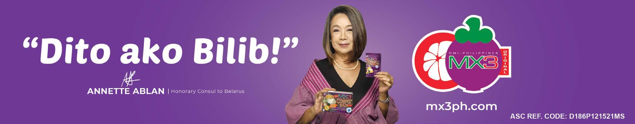 Briefly Market Indicators US$1 = P55.56 FOREX PHISIX AS OF 6:00 PM NOV 21, 2022 (FRI) 6,496.50 70.3 points 0.025 cents X X P15.00 Volume XIII, No. 81 Mon-Tue | December 19-20, 2022 www.businessweekmindanao.com CREDIBLE RELIABLE IN-DEPTH MINDANAO BusinessWeek YOUR MINDANAO-WIDE BUSINESS PAPER