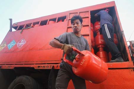 LPG BEFORE PRICE HIKE. Workers unload liquified petroleum gas cylinders at a retail store along R. Castillo Street, Davao City on Tuesday (31 January 2023). Prices of cooking gas are set to increase by at least P8 per kilogram Wednesday. MindaNews Photo