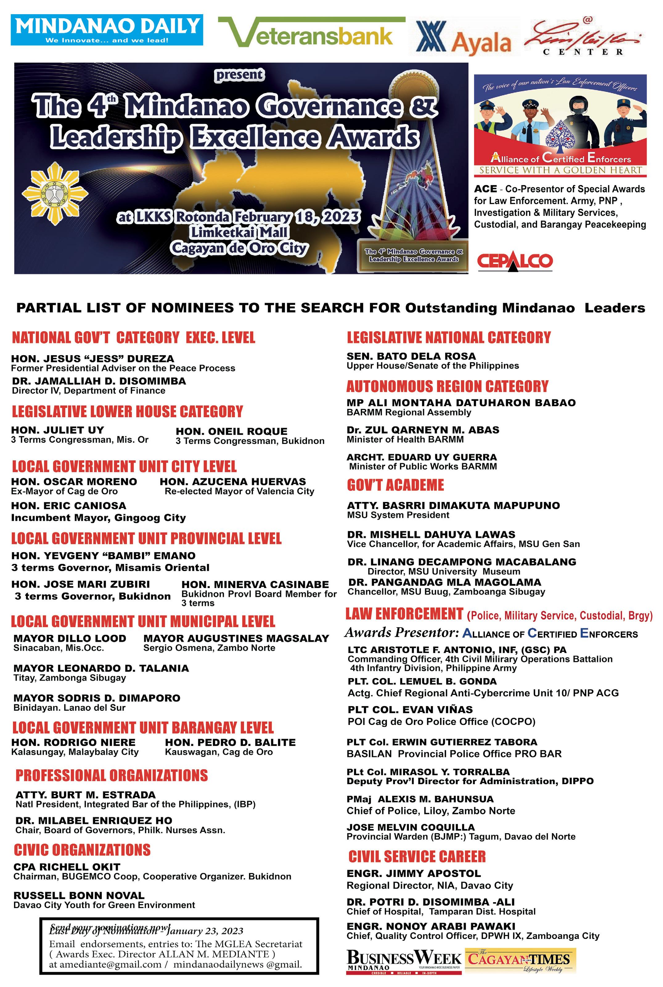 11 FOR ADS PLACEMENT CALL OR TEXT: +63917-712-1424 • +63947-893-5776 E-Mail: mindanaodailynews@gmail.com Saturday, January 7, 2023