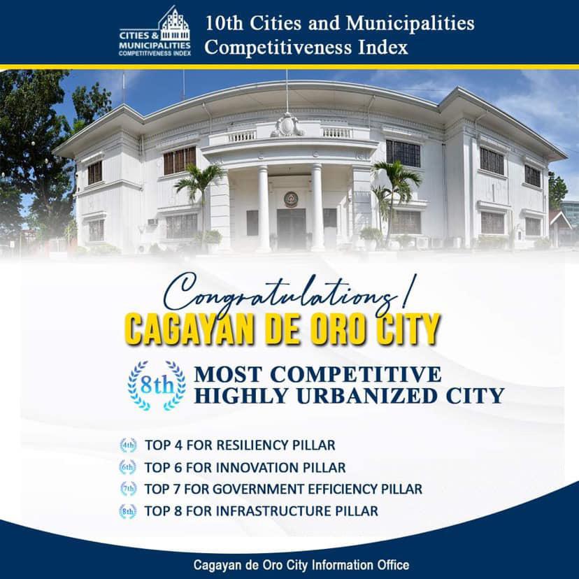 Once again, Cagayan de Oro has made it as one of the ‘Top 10 Most Competitive Highly Urbanized Cities’ in the country this year.