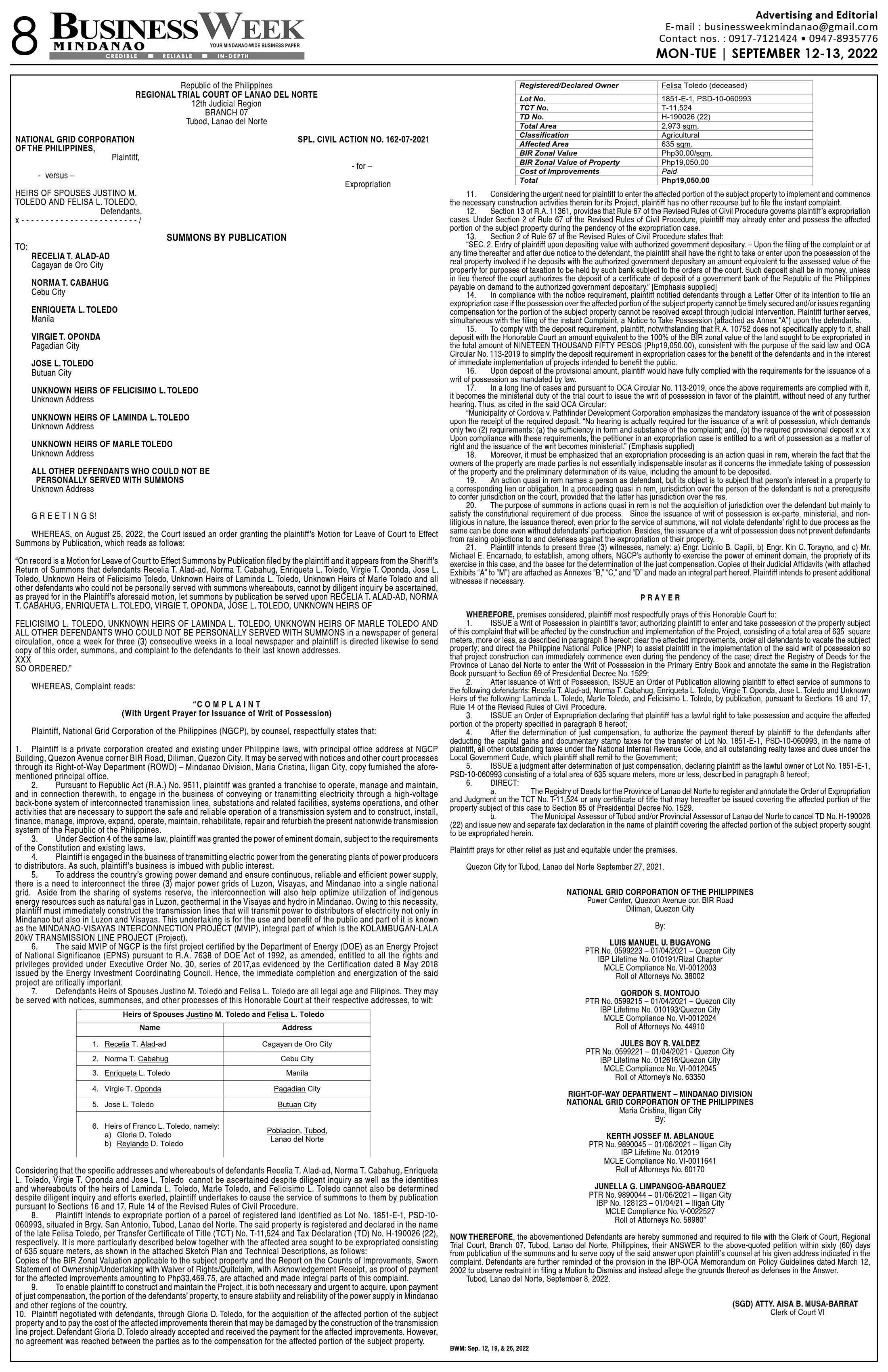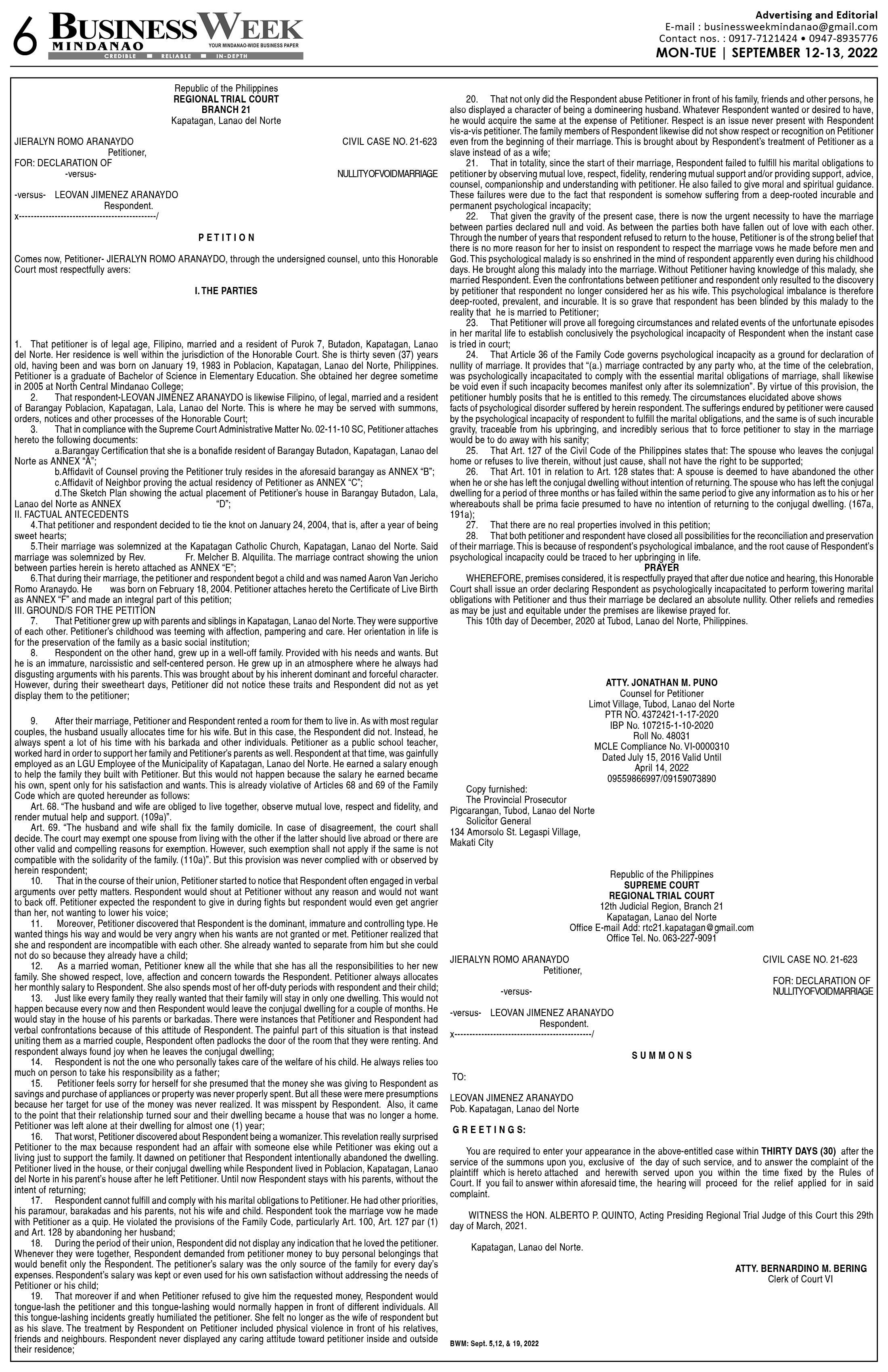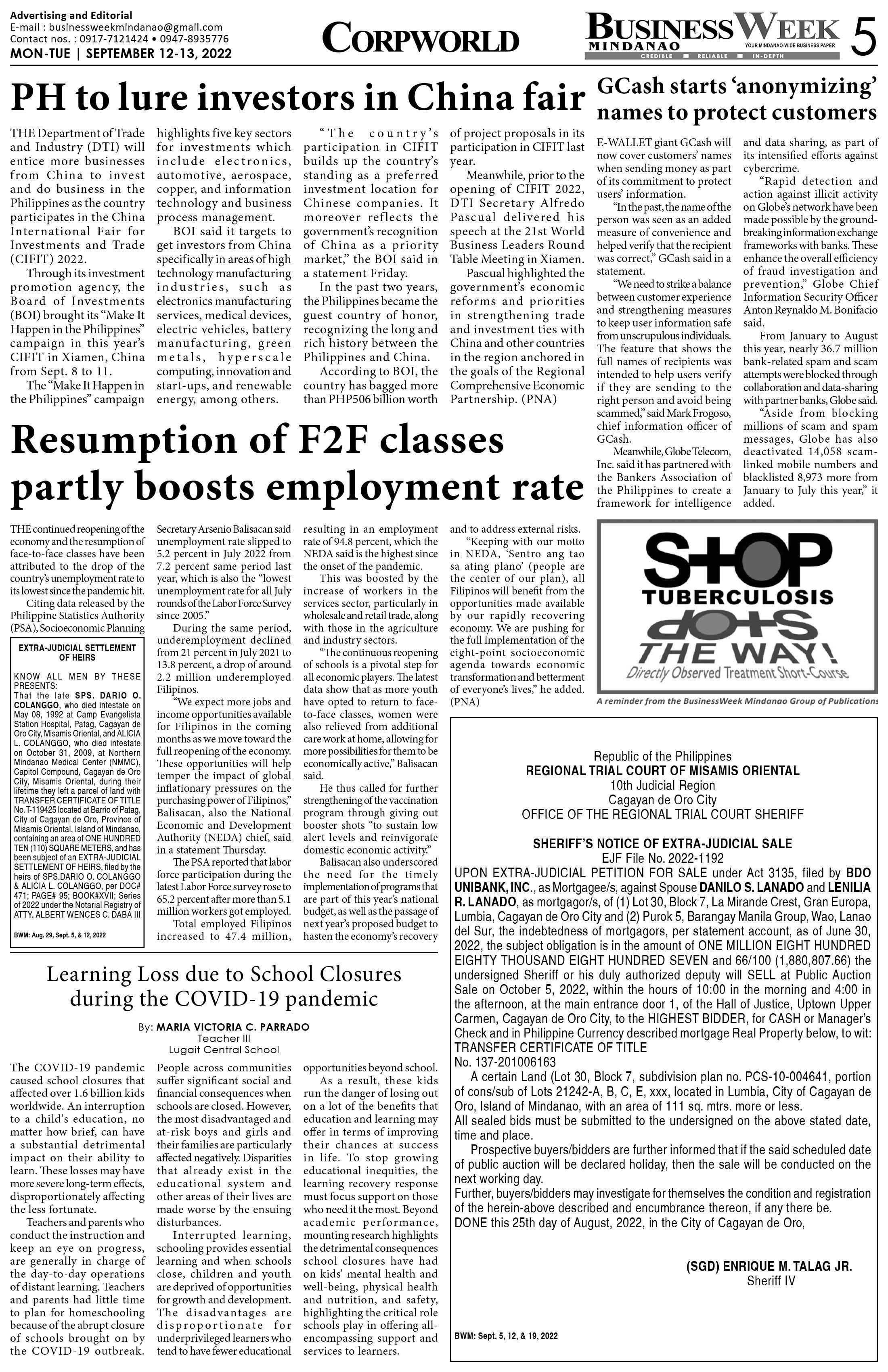 BusinessWeek Mindanao (September 12, 2022)