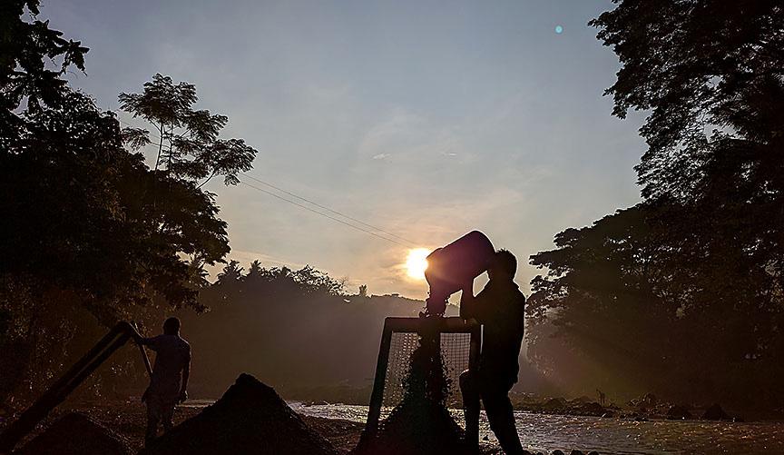 EARLY WORK. Laborers quarrying sand and gravel at the Pugaan River in Iligan City start the day to avoid the heat. MindaNews photo by BOBBY TIMONERA